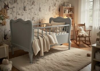 SFEERVOL PEUTERBEDJE MET HARTJES. 70x150cm. Met lattenbodem en uitvalrekje.
