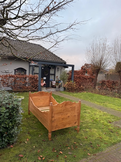 ‘Je eerste bedje!’ SFEERVOL OUD-GRENEN VINTAGE KAJUITBED.