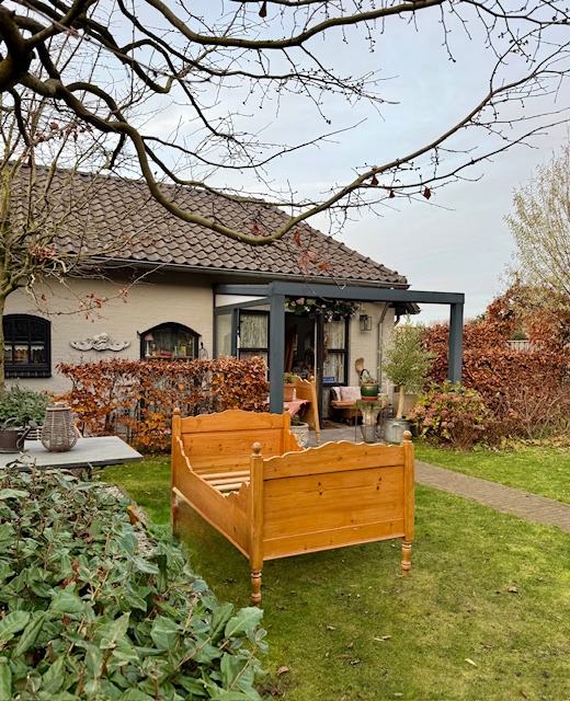 SFEERVOL OUD-GRENEN VINTAGE KAJUITBED.