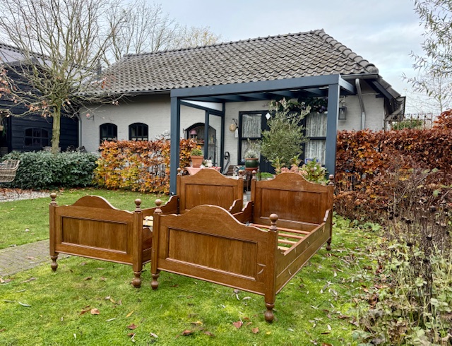 TWEELING? 2 STOERE EIKEN VINTAGE KNOPPENBEDDEN/KAJUITBEDDEN